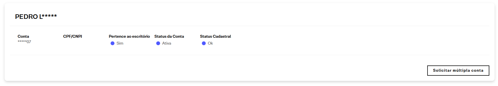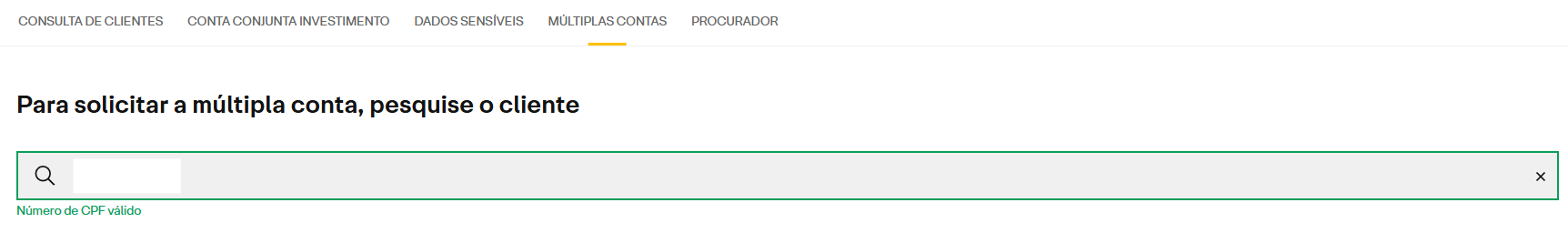 Para consultar se um cliente Ja possui uma conta aberta na XP investimentos, deve ir na parte de Cadastro PF > Múltiplas contas e pesquisar via CPF.
